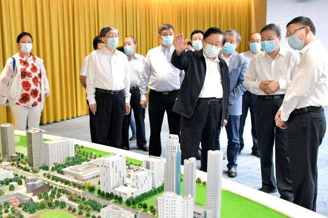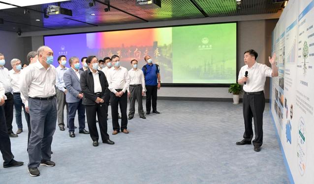 万钢一行首先来到建筑设计研究院,实地参观了同济大学科研成果展,听取了副校长童小华所作的关于学校服务国家和上海市重大科技成果、环同济知识经济圈建设、科研成果转化、科技成果分类多元评价等方面情况的汇报,对同济大学坚持“四个面向”,持续提升基础研究实力、加快推进关键核心技术攻关、健全科技成果评价体系的创新探索表示赞赏。