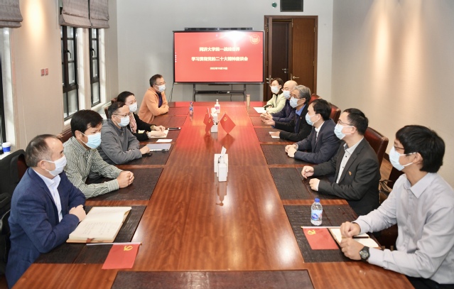 冯身洪指出,要把学习贯彻党的二十大精神作为一项重要政治任务,将学习任务转化为内在需求,全面学习、深刻领会。坚持把学习二十大精神与工作实际紧密结合,聚焦学校中心工作,贡献统战智慧力量。