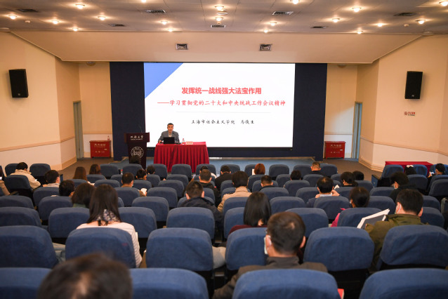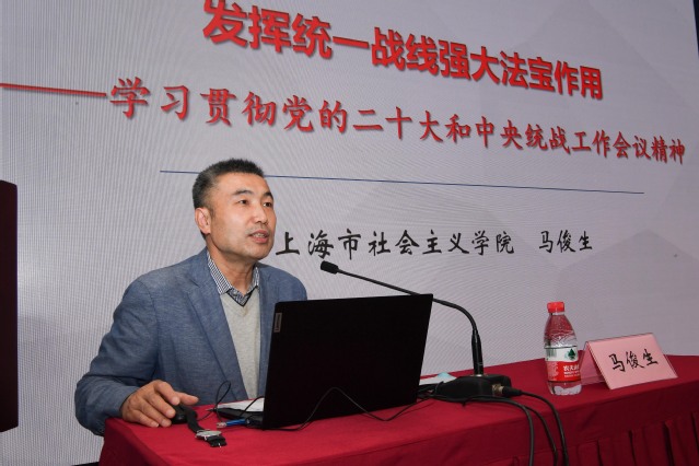 11月14日下午,同济大学统一战线成员及统战工作者学习党的二十大精神专题研修班在四平路校区举行。上海市社会主义学院副院长马俊生应邀作专题辅导报告。学校各民主党派成员代表、无党派人士代表及二级党组织统战委员参加培训。