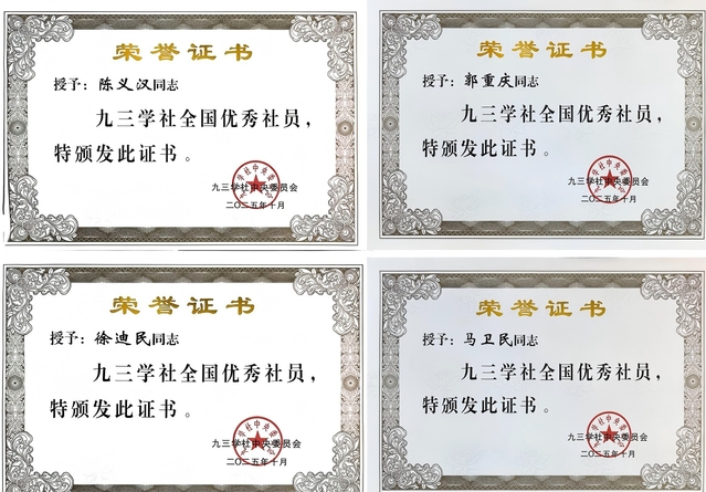 陈义汉、郭重庆、徐迪民、马卫民获“九三学社全国优秀社员”称号;